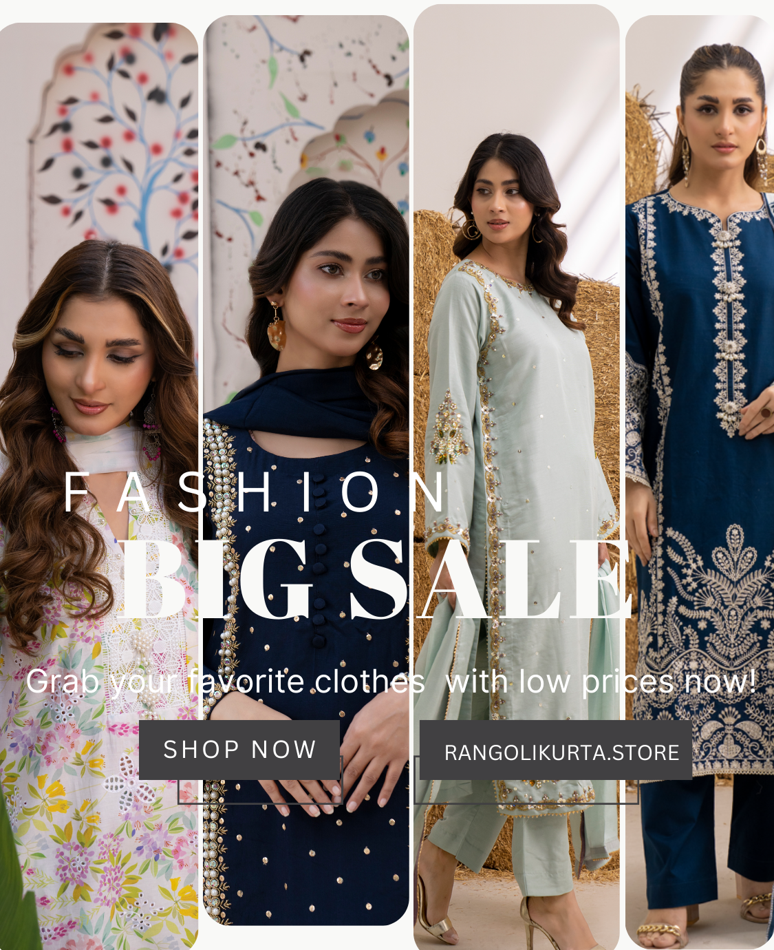 Explore our Rangoli Kurta collection of beautiful Shalwar Kameez for women. Soft, comfortable fabrics with vibrant colors and delicate embroidery make each outfit perfect for casual wear, family gatherings, or festive occasions.